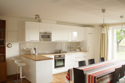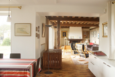 | Vue de la salle-à-manger et du séjour | Vue de l'entrée et de la salle-à-manger | |